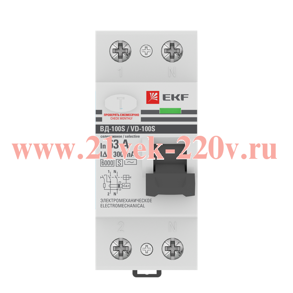 Выключатель дифференциального тока (УЗО) 2п 63А 300мА тип АС 6кА ВД-100 (S) электромеханич. PROxima