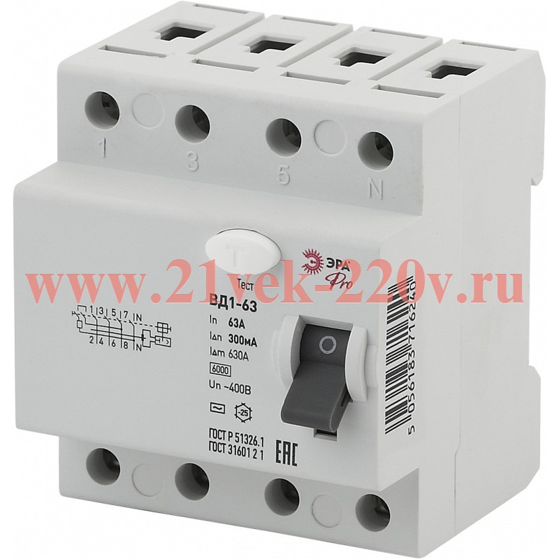 УЗО ЭРА PRO VD4EM63S300 ВД1-63 4P 63А 300мА тип S электромеханическое
