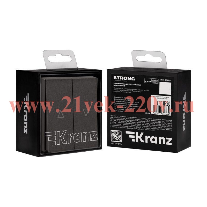Механизм двухклавишного выключателя скрытой установки KRANZ предназначен для подключения к электрической сети внутри помещений. Используется для управления жалюзи.