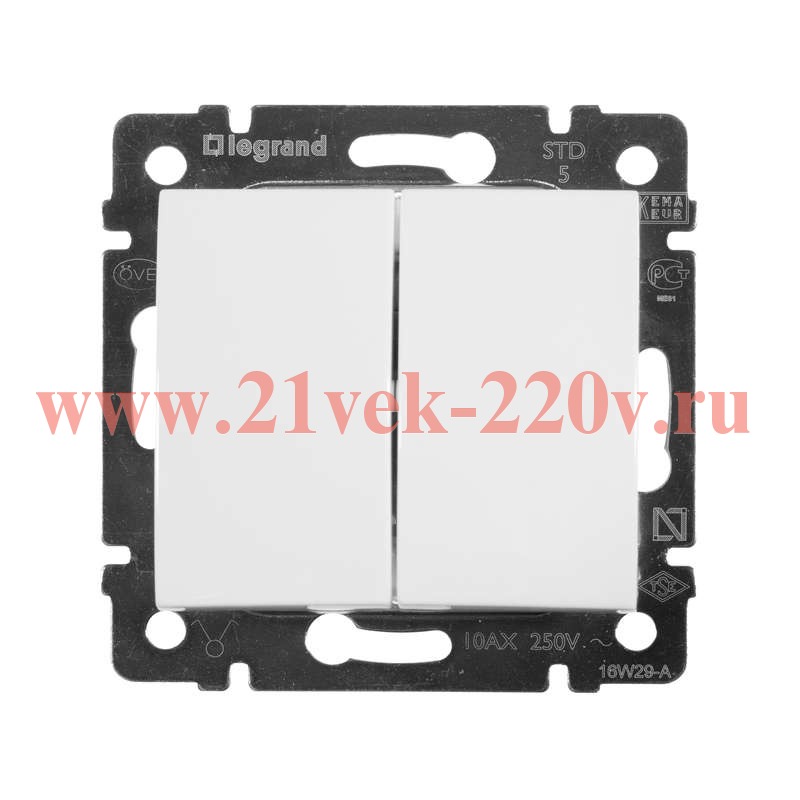 Двухклавишный выключатель Legrand серии Valena 10А 250В. Цвет - белый