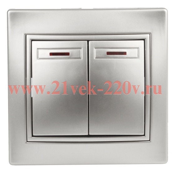 Выключатель двойной с подсветкой, 10А-250В, IP20, СУ, алюминий Intro Plano 1-105-03.