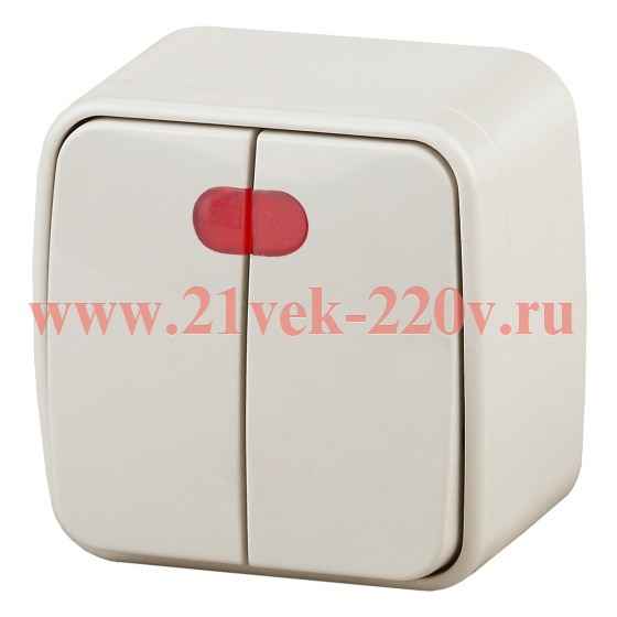 Выключатель Intro Polo 3-105-02 двухклавишный с подсветкой, 10A-250В, IP20, ОУ, слоновая кость.