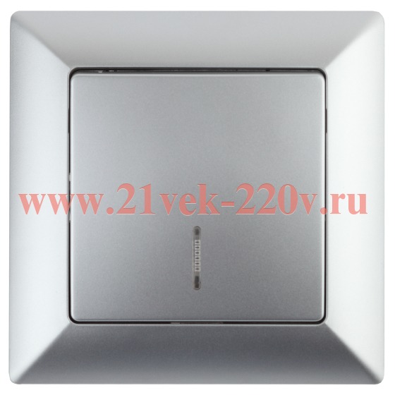 Выключатель Intro Solo 4-102-03 одноклавишный с подсветкой, 10А-250В, IP20, СУ, алюминий