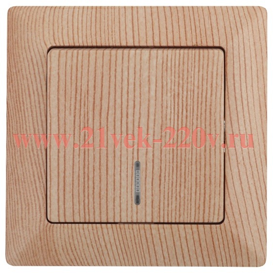 Выключатель Intro Solo 4-102-11 одноклавишный с подсветкой, 10А-250В, IP20, СУ, сосна