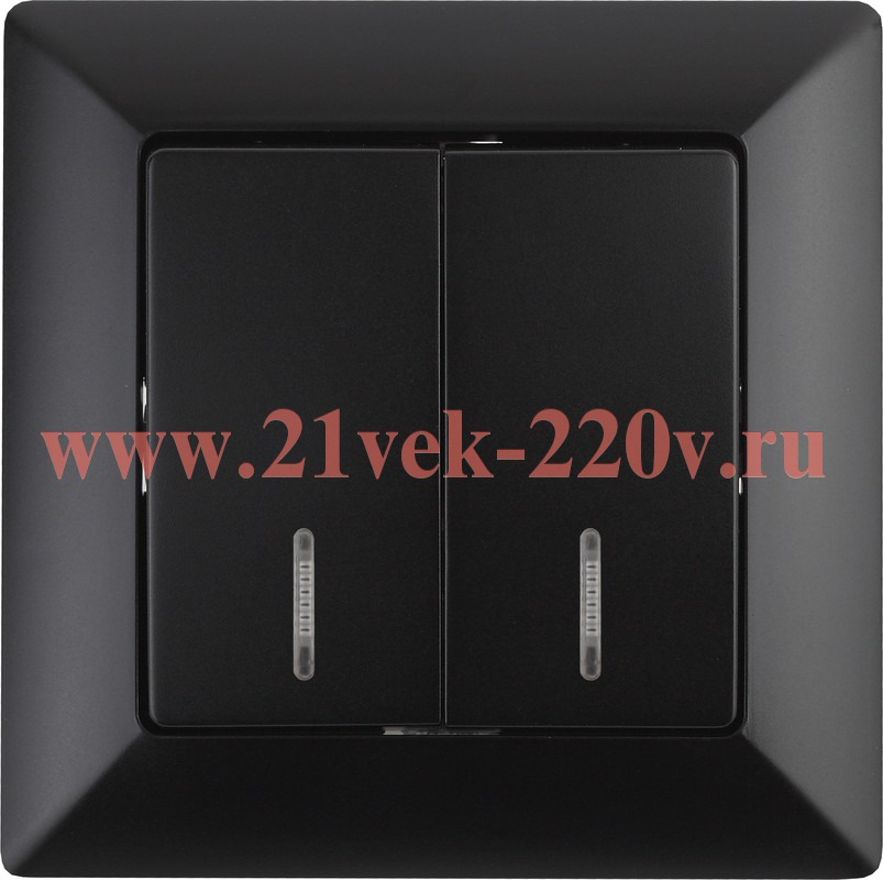 Выключатель Intro Solo 4-105-05 двухклавишный с подсветкой, 10А-250В, IP20, СУ, Solo, антрацит