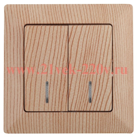 Выключатель Intro Solo 4-105-11 двухклавишный с подсветкой, 10А-250В, IP20, СУ, сосна