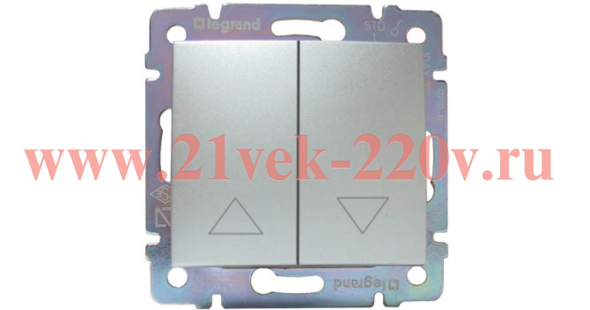 Кнопочный выключатель, для управления рольставнями, с электрической блокировкой Legrand серии Valena 10А 250В. Цвет - алюминий.