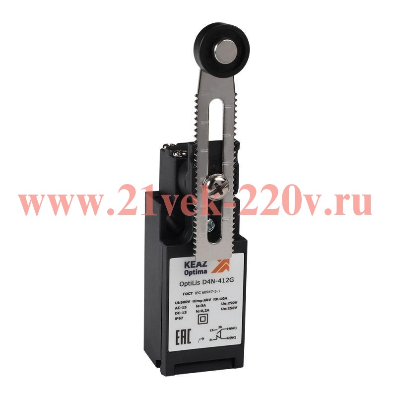Выключатель концевой OptiLiS D4N-412M рычаг регулируемый с роликом метал. EN 50047 XCKN2146P20 КЭАЗ