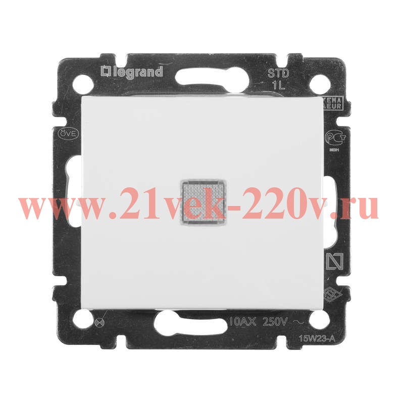 Одноклавишный выключатель с подсветкой Legrand серии Valena 10А 250В. Цвет - белый