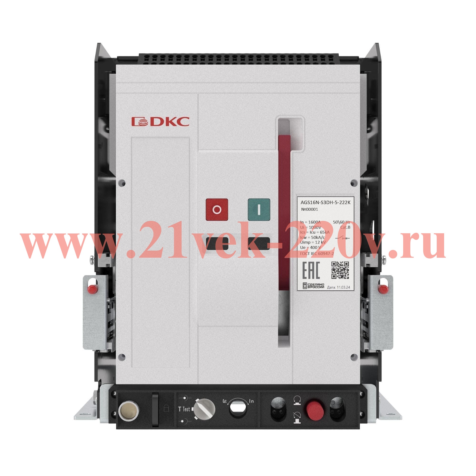 Выключатель нагрузки YON AGS10N-S3DH-0-222K, 65 кА, типоразмер S, выкатной, управление 220 В AC, горизонтальное подключение