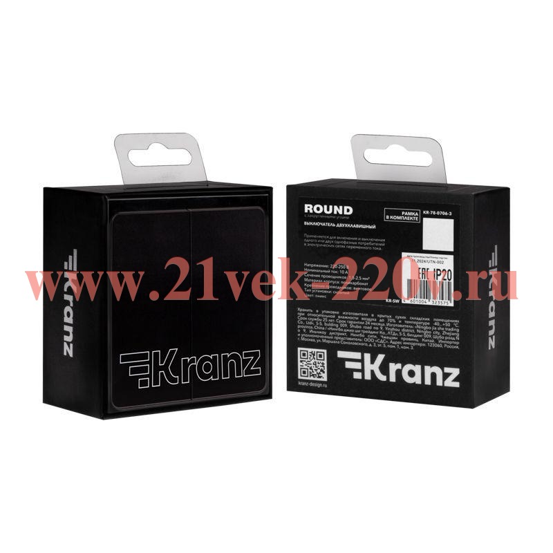Выключатель проходной (переключатель) 2-кл. СП ROUND 10А оникс Kranz KR-78-0709-3