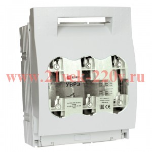 Выключатель-разъединитель УВРЭ 250А откидного типа под предохранители ППН (габ.1) EKF PROxima. Выключатели-разъединители ВРЭ предназначены для ручного включения-отключения цепей переменного тока номинальным напряжением до 500В/690В (ВРЭ/ВРЭ с предохранителями) частотой 50Гц, а также для защиты от коротких замыканий и перегрузки в моделях с плавкими предохранителями (предохранители в комплект поставки не включены). Двойной видимый разрыв цепи и прочный корпус с функцией дугогасительной камеры, выполненный из негорючего полиамида со стекловолокном, обеспечивают максимальную безопасность переключения. Фронтальная защита от прикосновений обеспечивается защитной крышкой. Применяются в качестве аварийного или главного выключателя для токов от 160А до 630А в вводно-распределительных устройствах, распределительных и шкафов управления и др. Устанавливаются на монтажную панель. Конструктивно ВРЭ состоит из трехполюсного основания с механизмом замыкания/размыкания контактов и дугогасительными камерами, прозрачной защитной крышки для визуального определения положения контактов и рукоятки. Конструкция контактных выводов обеспечивает болтовое присоединение шин или проводников, оконцованных кабельными наконечниками. Есть возможность установки замка для блокировки включения/отключения. Выключатели- разъединители ВРЭ поставляются с передней рукояткой с возможностью выноса ее на дверцу шкафа (аксессуары для установки рукоятки на дверцу шкафа в комплект поставки не включены). Выключатели могут дополнительно оснащаться электромеханическим дополнительным контактом состояния NO+NC.
