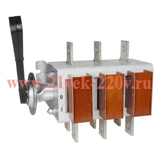 Выключатель-разъединитель 3 полюсный на номинальный ток 630 А, в котором установлена съёмная рукоятка.