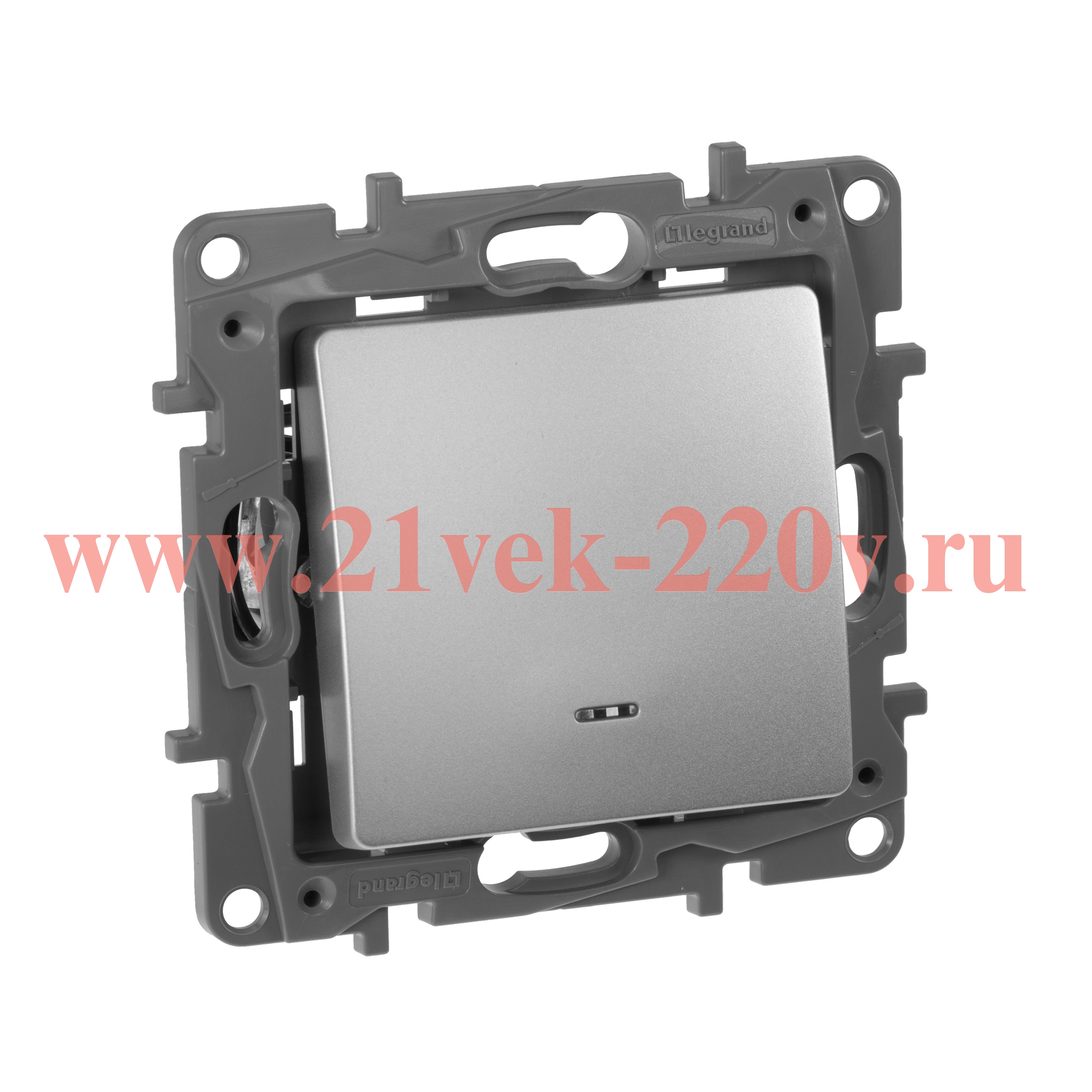 Выключатель c подсветкой,самозажимные клеммы (672403) Легранд (Legrand) серии Этика (Etika). Цвет - алюминий.