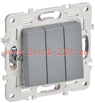 Механизм 3-клавишного выключателя для скрытого монтажа серого цвета