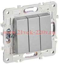 Механизм 3-клавишного выключателя для скрытого монтажа цвета серебро