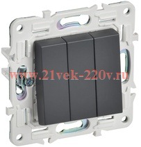 Механизм 3-клавишного выключателя для скрытого монтажа цвета титан