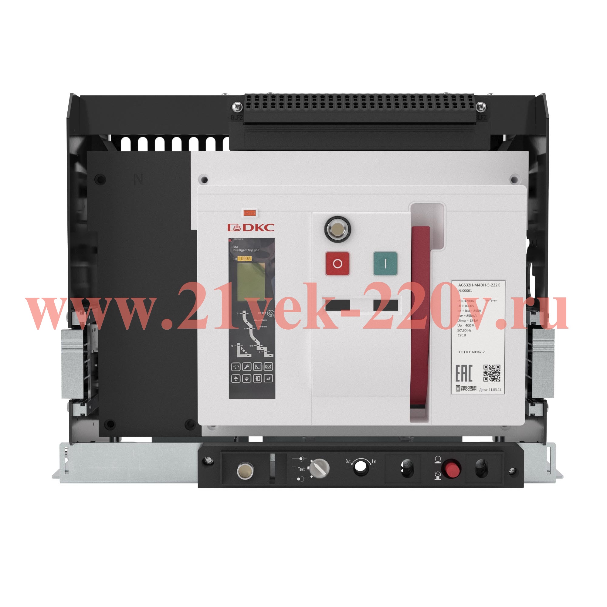 Воздушный автоматический выключатель YON AGS25H 4Р 2500 А 85 кА, типоразмер M, расцепитель 3H, выкатной, управление 220 В AC, горизонтальное подключение