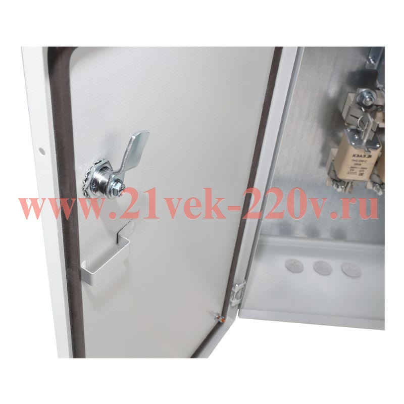 Ящик силовой типа ЯРП в комплекте с предохранителями на номинальный ток 100 А. Шкаф изготовлен с применением выключателей-разъединителей серии ВР32 на два направления и предохранителей серии ПН2. Съемная ручка ВР32 поставляется в комплекте. Включение выключателя-разъединителя блокирует дверь шкафа. Открытие двери возможно только при отключении выключателя-разъединителя. Оболочка навесного типа со степенью защиты IP54. Цвет: RAL7035 (порошковая окраска).