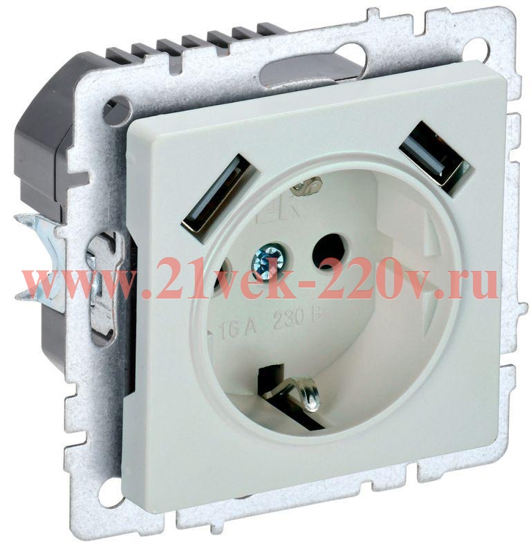 Электрическая розетка с защитным заземлением для подключения к электрической сети различных приборов и агрегатов. Два разъема USB позволяют заряжать гаджеты не занимая силовую розетку.