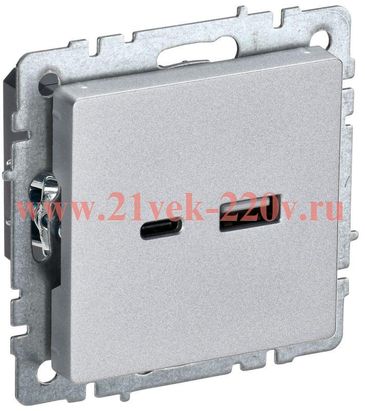 Механизм зарядного устройства с разъемом USB type A+С 3100мА для скрытого монтажа, накладка цвета алюминий, IEK BRITE. BR-U22-018-K47