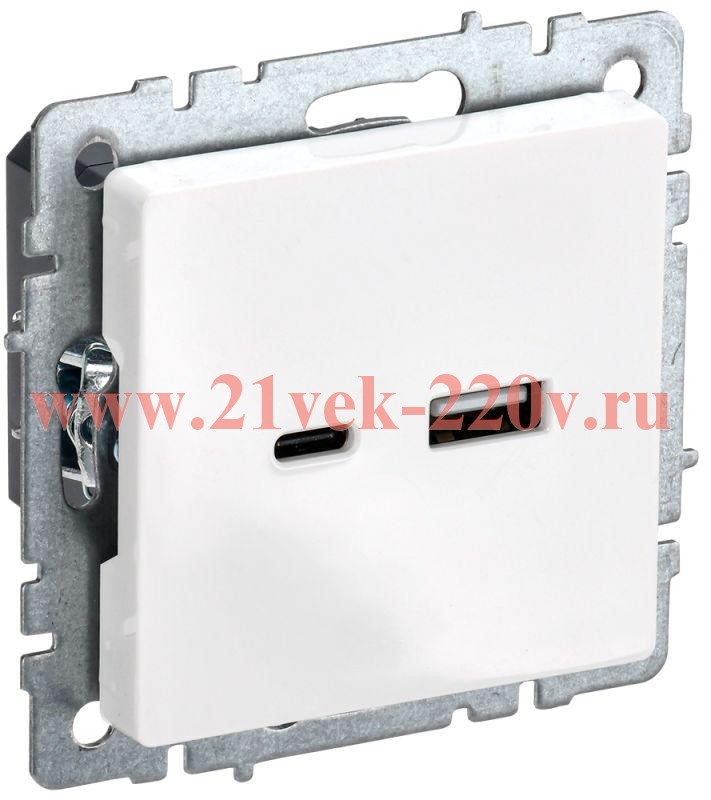 Механизм зарядного устройства с разъемом USB type A+С 3100мА для скрытого монтажа, накладка белого цвета, IEK BRITE. BR-U22-018-K01