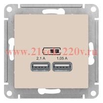 Встраиваемая двойная USB зарядка бежевого цвета, Атлас Дизайн ATN000233