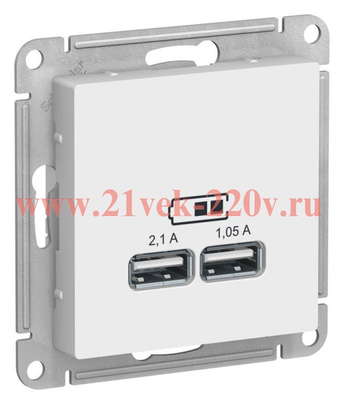 Предлагаемый электрический механизм предназначен для зарядки портативных устройств, подпадающих по токовые характеристики одного из портовых разъемов. Общее напряжение на выходе зарядного устройства – 5 Вольт, сила тока на первом разъеме – 2,1 Ампер, на втором – 1,05 Ампер. Тип разъема – USB.Лицевая панель зарядки имеет форму правильного четырехугольника. Классический стилевой дизайн интерьера подчеркнут цветом лотос глянцевой поверхности. Накладка выполнена из унифицированного полимера: прочного; химически инертного; обладающего бактерицидными свойствами.Металлический сплав, из которого изготовлены все контактные группы устройства, содержит значительный процент серебра, улучшающего электрическую проводимость. Проводниковые сетевые вводы оснащены надежными винтовыми зажимами.Суппортная перфорация позволяет максимально отрегулировать правильный уровень постовой встроенной установки механизма зарядки. Для фиксирования в монолитном объеме, изделие оснащено конструкционным элементом механического разжима.| Способ монтажа: | Скрытой установки |