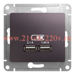 Зарядка USB 5В/2100мА, 2х5В/1050мА механизм SE Glossa, сиреневый туман