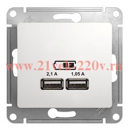 Механизм розетки скрытого монтажа с двумя разъёмами USB 2,1 А/1,05 А, Глосса, белый цвет GSL000133