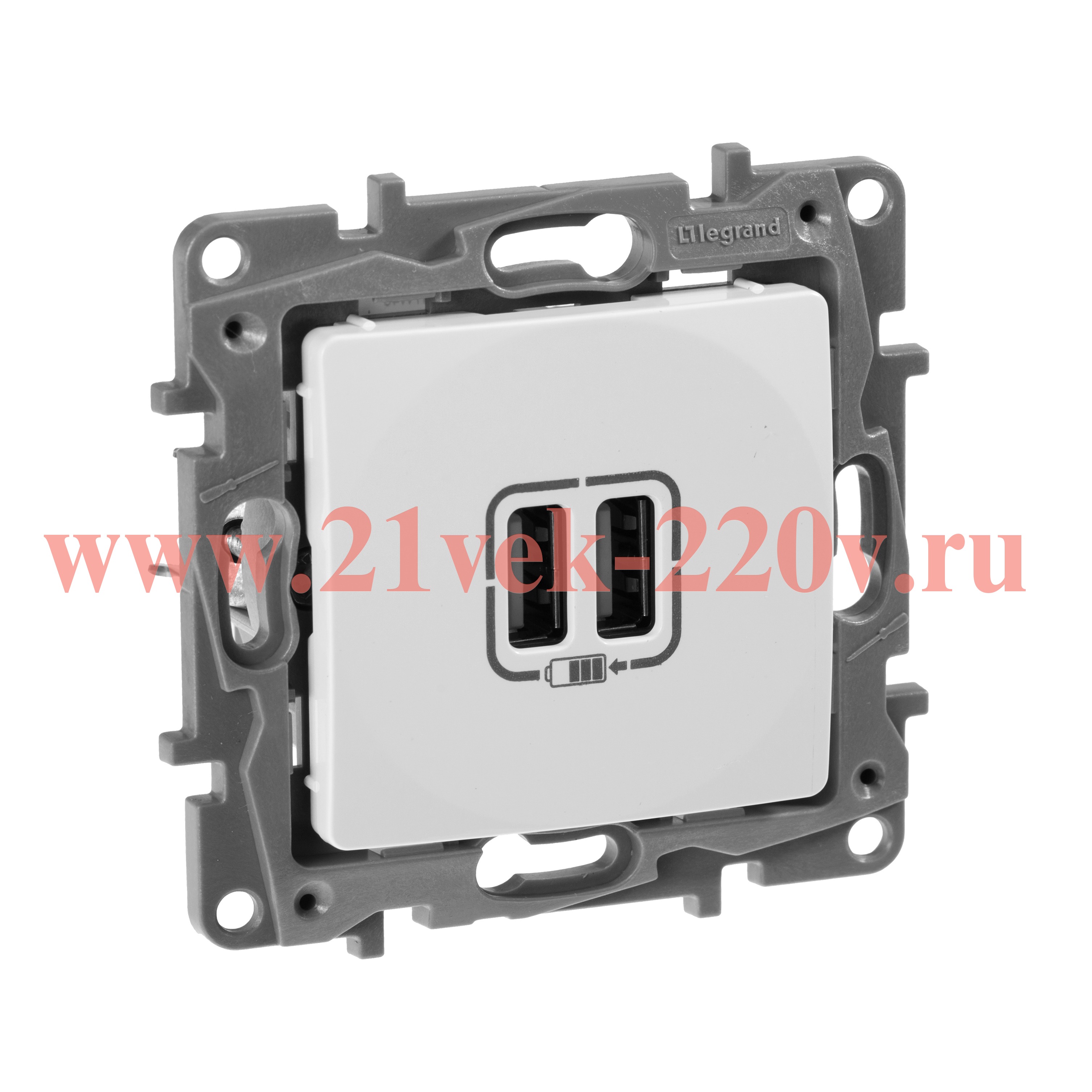 Устройство зарядное с двумя разъемами (672294) 240В/5В 2400мА фирмы Легранд (Legrand) серии Этика (Etika). Цвет - белый.