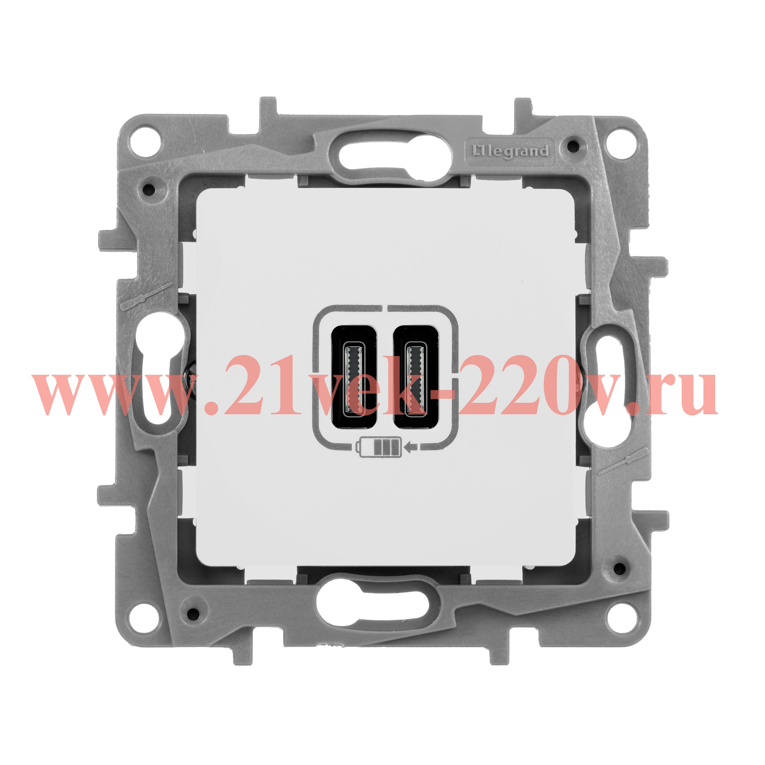 Устройство зарядное с двумя USB-разъемами Type C, 240В/5В 3000мА Легранд (Legrand) серии Этика (Etika). Цвет - алюминий.