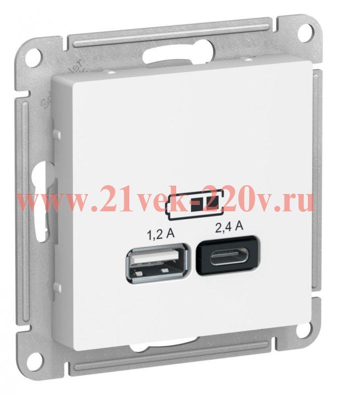 Розетка System Electric AtlasDesign (цвет лотос) двойная USB с разъемами типа A+C Пластик с ионами серебра в цвете лотос обеспечивает антибактериальный эффект. Cовременная USB-зарядка с двумя разъемами позволяет заряжать как стандартные мобильные устройства через разъем типа А, так и новейшии устройства, в том числе ноутбуки, с разъемом типа С.