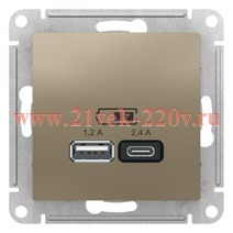 Механизм зарядной розетки Атлас Дизайн, два USB с разъема типа А и С, скрытого монтажа, цвет шампань ATN000539