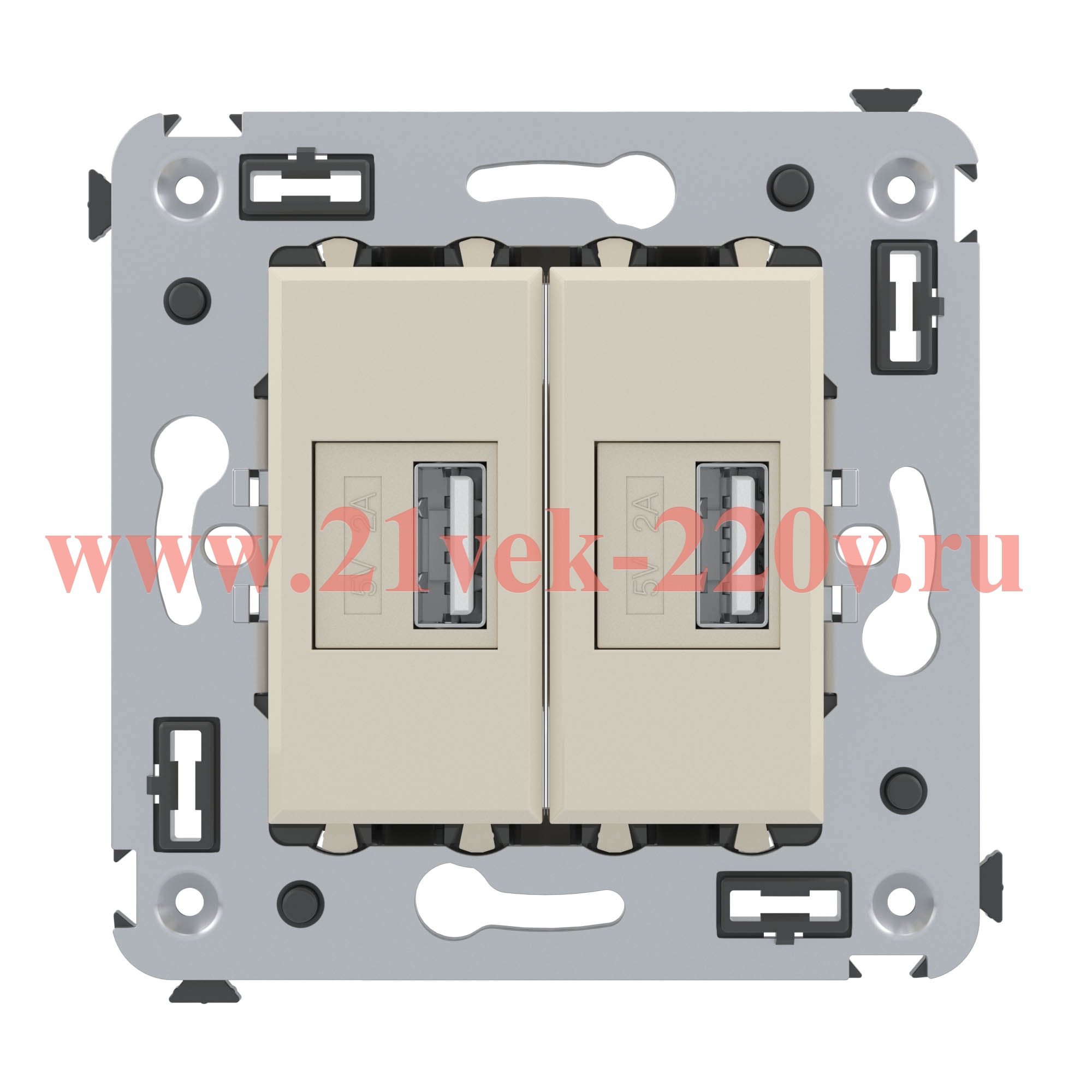 Зарядное устройство ДКС с 2мя USB выходами для скрытой установки,цвет ванильная дымка.