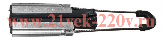 Зажим представляет собой литой корпус из антикоррозионного алюминиевого сплава, тросика из нержавеющей стали и саморегулируемых полимерных клиньев