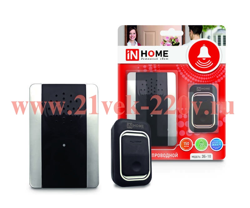 Дверной звонок ТМ IN HOME – это современное беспроводное устройство с большим радиусом действия (150 метров на открытом пространстве), брызгозащитной кнопкой (защита от влаги и пыли IP44) и электронной памятью на 25 красивых полифонических мелодий. Идеально подойдет для дачи, частного дома или внешней калитки. Уникальная цифровая кодировка сигнала для каждого изделия исключает возможность случайного срабатывания других звонков. Питание динамика - от батареек стандарта «АA» (в комплект не входят). Питание кнопки - от батарейки «А23» (поставляется в комплекте).