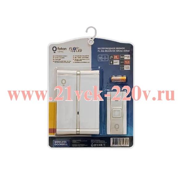 Звонок беспроводной FOTON FL- AG-9622K/DC 2x1.5V(AA) с 36 мелодиями и 2 уровнями громкости звука.
