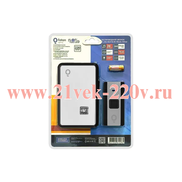 Звонок беспроводной в розетку FOTON FL- AG-9641K/AC (220Vевр.вилка) с 36 мелодиями и 3 уровнями громкости звука.