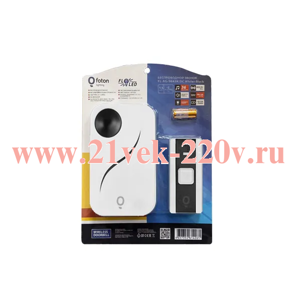 Звонок беспроводной FOTON FL- AG-9643K/DC 2x1.5V(AA) с 36 мелодиями и 3 уровнями громкости звука.